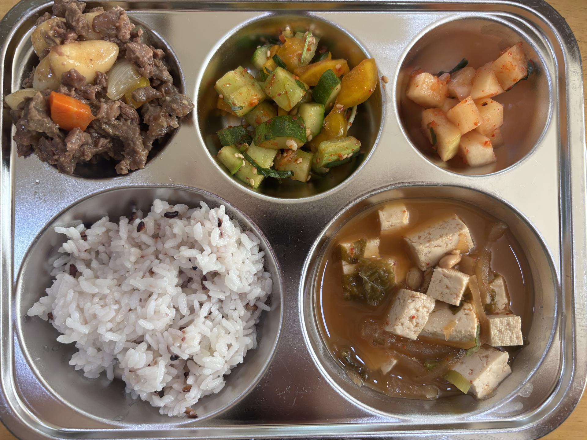 흑미밥, 청국장찌개, 한우사태떡찜, 오이부추무침, 유아김치